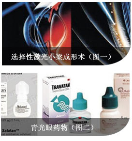 1、針對(duì)高眼壓癥者,主要以藥物或者選擇性激光小梁成形術(shù)治療。(如圖一)