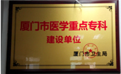 廈門市醫(yī)學(xué)重點(diǎn)??平ㄔO(shè)單位牌匾