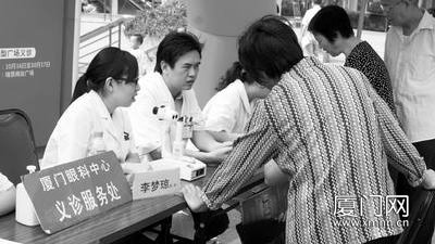 廈門大學(xué)附屬?gòu)B門眼【文章導(dǎo)讀】廈門眼科中心陳雙成主任和李夢(mèng)瓊醫(yī)生為瑞景社區(qū)居民免費(fèi)檢查。 在家門口 享受免費(fèi)眼檢 廈門眼科中心公益醫(yī)療4個(gè)月走進(jìn)130個(gè)社區(qū) 廈門眼科中心于今年6月正式啟動(dòng)公益醫(yī)療進(jìn)社區(qū)活