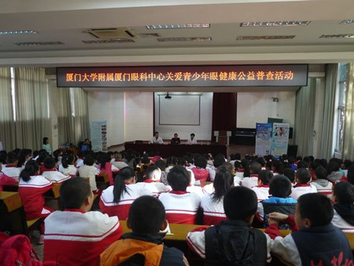 廈門眼科中心醫(yī)生為同學(xué)們檢查眼睛