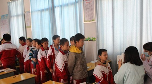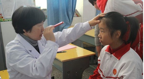 楊美瓊主任為學(xué)生檢查眼睛