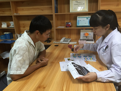 白內(nèi)障科的王晶博士在現(xiàn)場為患者們介紹高度近視與治療方法,并為患者講解眼部檢查結(jié)果。有患者當(dāng)場就預(yù)約了手術(shù)時間,準(zhǔn)備摘鏡。