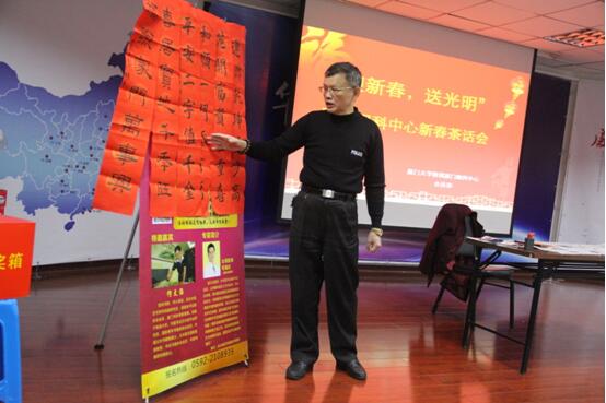 茶話會現(xiàn)場還特別邀請到廈門書協(xié)常務(wù)理事何文強(qiáng)老師,現(xiàn)場交流書法創(chuàng)作,并指導(dǎo)大家寫春聯(lián)。全場活動人數(shù)爆滿,大家都很積極地參與了互動。
