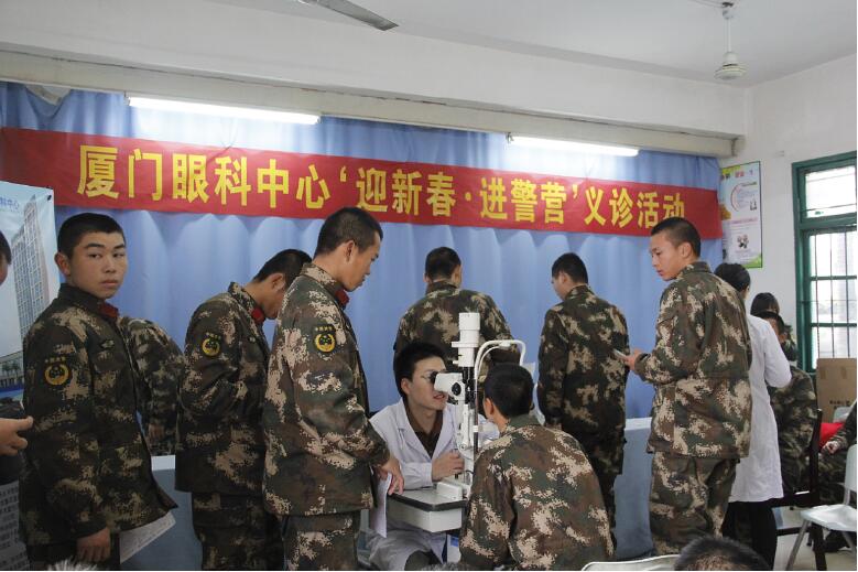 1月29日下午,廈門眼科中心眼表與角膜病專家一行9人冒著冬雨到翔安武警邊防支隊機動大隊,開展“迎新春 送健康”健康咨詢、義診活動,并為邊防支隊武警贈送了進口眼藥水。廈門眼科中心以實際行動提前為武警邊防支隊致以新春祝福與問候,并送去了健康。義診現(xiàn)場氣氛十分熱烈,義診從下午三點半一直持續(xù)到下午六點,為近百名武警做了眼體檢。