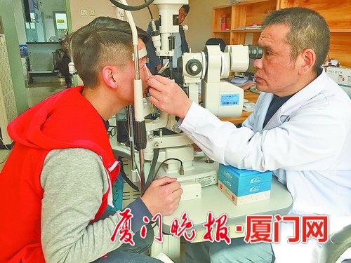 ■吳護(hù)平為角膜移植患者做眼睛檢查