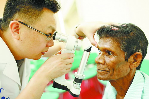 2014年9月中旬,以廈門(mén)眼科中心張廣斌副院長(zhǎng)、毛祖紅副主任醫(yī)師和李立梅博士為主刀醫(yī)師的醫(yī)療專(zhuān)家組,遠(yuǎn)赴斯里蘭卡首都科倫坡為當(dāng)?shù)鼐用衩赓M(fèi)實(shí)施了1006例白內(nèi)障手術(shù)。這是中斯1600多年交往史上,有中國(guó)醫(yī)療專(zhuān)家在斯里蘭卡開(kāi)展醫(yī)療活動(dòng),也是接受角膜饋贈(zèng)的外國(guó)醫(yī)療隊(duì)頭一次給他們回饋。