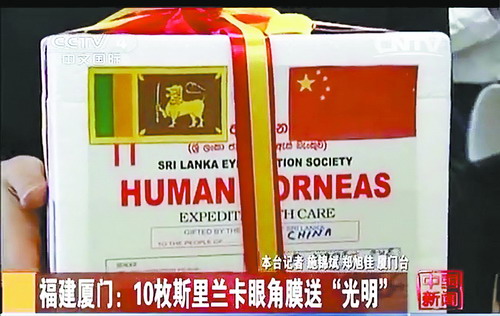 中央電視臺(tái)4套中文國(guó)際報(bào)道《10枚斯里蘭卡眼角膜送“光明”》