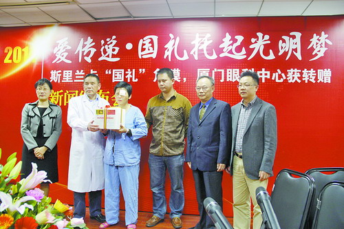 為回饋中方,斯里蘭卡第一夫人了解到我國(guó)目前眼角膜來(lái)源緊張后,贈(zèng)送給主席夫人10枚眼角膜,隨后這份“國(guó)禮”被轉(zhuǎn)贈(zèng)給廈門(mén)大學(xué)附屬?gòu)B門(mén)眼科中心。來(lái)自湖南、江西、福建、甘肅等地的12名眼疾患者分享了這一厚禮,重見(jiàn)光明。