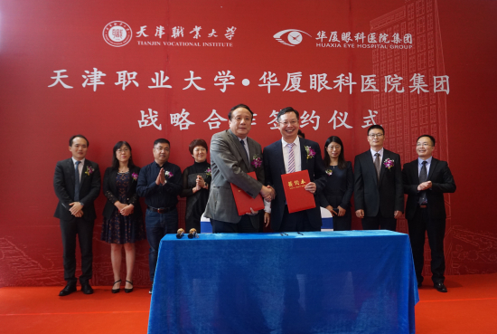 華廈眼科醫(yī)院集團、天津職業(yè)大學相關領導合影