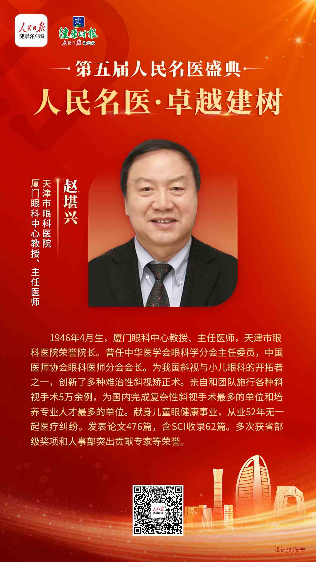 8月16日,由人民日報健康客戶端、健康時報主辦的第五屆人民名醫(yī)盛典于線上舉行,會上發(fā)布了備受業(yè)內(nèi)關(guān)注的人民名醫(yī)系列榜單。其中,廈門眼科中心國際眼科科學(xué)院院士趙堪興教授獲“人民名醫(yī)——卓越建樹”榮譽(yù)稱號。