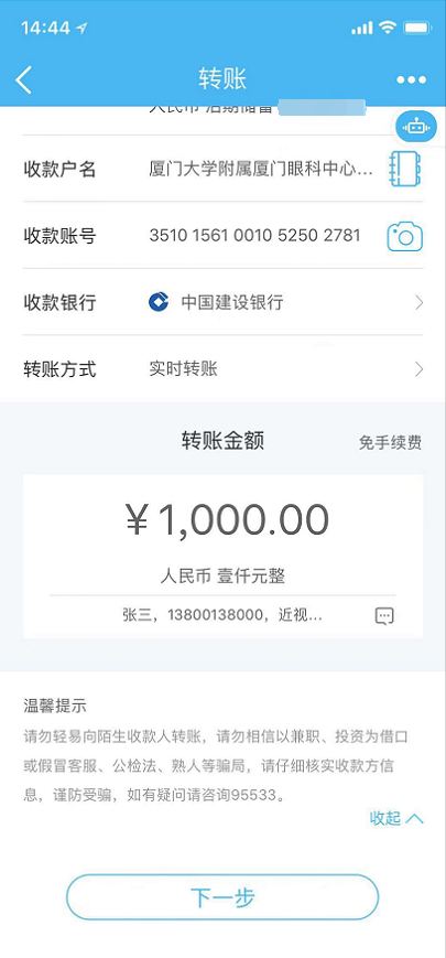 通過對公賬戶繳費的患者需要標(biāo)注姓名+電話+近視手術(shù)開放日。
