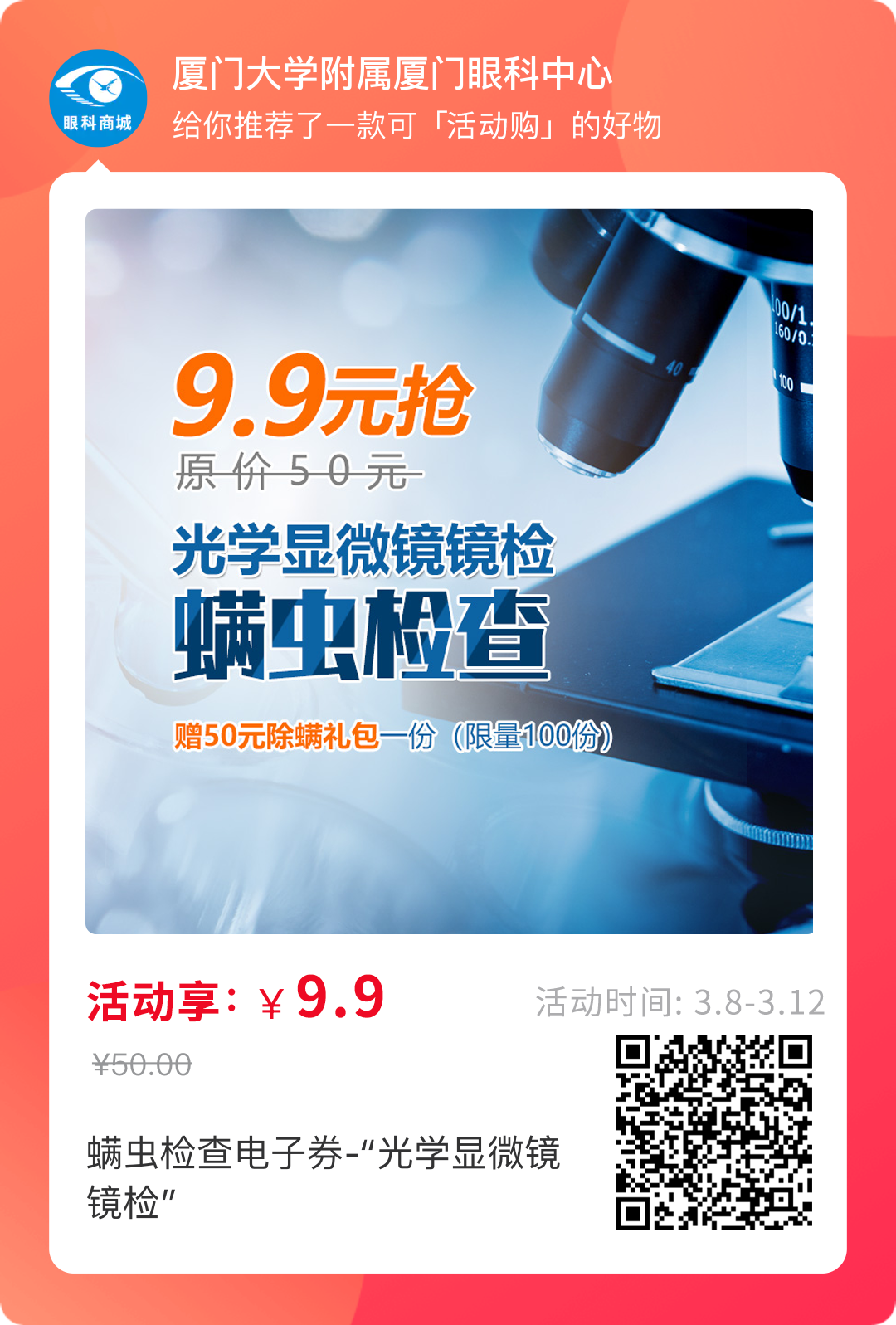 1、9.9元享50元“光學顯微鏡鏡檢”螨蟲檢查;