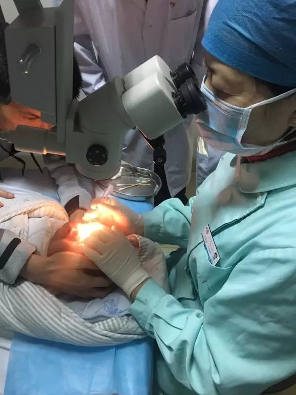 為涵涵拆線的芬琴護士長說:“我是頭一次在表麻下為這么小的孩子拆角膜線。為了讓涵涵更好的恢復,要分4次來拆。每次來小寶貝都長大一些。希望他能健康茁壯的成長。”