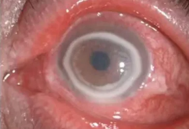 眼表與角膜病科學科帶頭人吳護平主任醫(yī)師在初診時,發(fā)現(xiàn)蘇師傅左眼的視力僅有0.3,通過裂隙燈和角膜熒光染色檢查,可以看到蘇師傅的角膜有明顯的炎癥性病變,炎癥細胞已經(jīng)浸潤到角膜組織中,形成了一個環(huán)狀浸潤,角膜上皮大面積破損,出現(xiàn)了水腫和潰瘍。