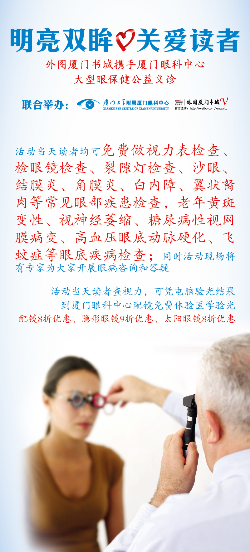 福建省醫(yī)學(xué)會(huì)眼科學(xué)【文章導(dǎo)讀】6月29日(六)9:30-11:30,外圖廈門書(shū)城聯(lián)合廈門大學(xué)附屬?gòu)B門眼科中心開(kāi)展明亮雙眸關(guān)愛(ài)讀者大型眼保健公益義診,歡迎有需要的讀者參加! 活動(dòng)當(dāng)天讀者均可免費(fèi)做視力表檢查、檢眼鏡