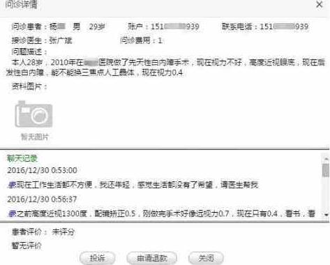 12月30日0:53,28歲的先天性白內(nèi)障患者小楊在眼科通APP上發(fā)出圖文咨詢:本人29歲,之前先天性白內(nèi)障,高度近視1300度,配鏡矯正視力0.5,2010年在某醫(yī)院做了手術(shù),剛做完時遠視力0.7,現(xiàn)在后發(fā)性白內(nèi)障,視力只有0.4,看書、看電腦字小、光線不好無法識別,能不能換三焦點人工晶體,有沒有好的方案或建議?