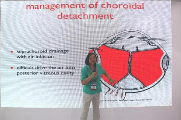 15日9點(diǎn)30分,廈門眼科中心高度近視??浦魅螐埓静┦堪l(fā)表了題為《高度近視牽拉性黃斑病變的診斷與治療》的演講。