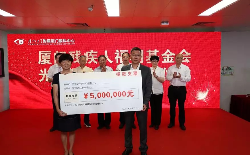 五緣院區(qū)開業(yè)儀式上,廈門眼科中心再次將“光明的信仰”傳遞——為廈門市殘聯(lián)捐款500萬元,成立專項(xiàng)基金,用于視力殘疾預(yù)防、眼科手術(shù)救助、盲人協(xié)會(huì)活動(dòng)等。