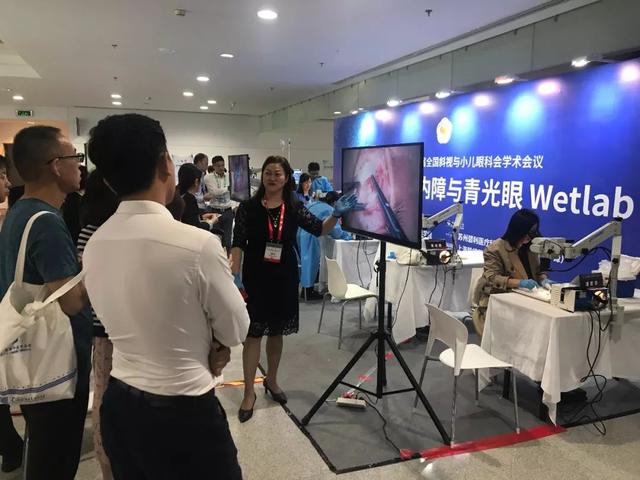 在wetlab操作區(qū),潘美華教授關(guān)于睫狀血管分離保留術(shù)的錄像視頻引發(fā)了吸引很多學(xué)院駐足觀看,圍觀的人群中還有兩位自來美國的專家,為了滿足眼科醫(yī)生的學(xué)習(xí)熱情,主展單位特別邀請潘美華教授在茶歇時間,親自為與會來賓示范了一次血管分離保留術(shù)的操作,操作區(qū)一時間人氣爆棚。另外在手術(shù)演示中出現(xiàn)了兩把由潘美華教授自主創(chuàng)新,并申請了專利的血管分離專用器械也受到學(xué)員們的關(guān)注,很多人在操作區(qū)詢問關(guān)于這兩把器械的相關(guān)問題。