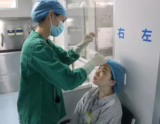 摘鏡的醫(yī)生做完手術(shù)后輪流接受檢查