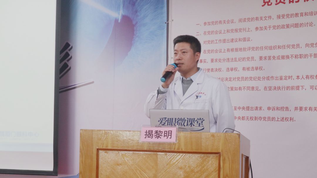 ▲揭黎明主任講解當(dāng)今近視矯正領(lǐng)域的發(fā)展和技術(shù)
