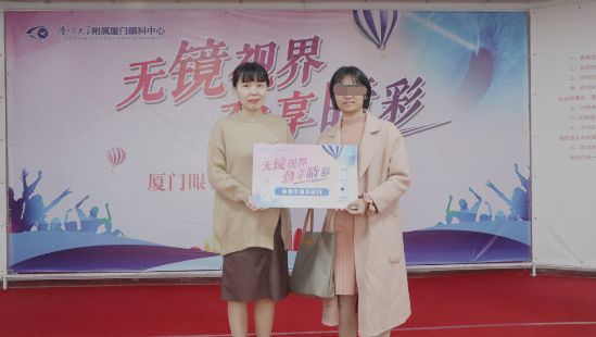 ▲廈門(mén)眼科中心總經(jīng)理姚鄭玲玲與獲獎(jiǎng)?wù)吆嫌?/div>