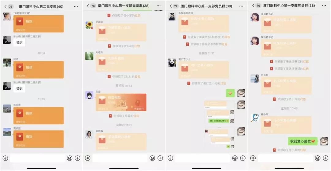 全民抗疫情,黨員當先鋒。黨員積極響應讓黨旗在戰(zhàn)“疫”中高高飄揚——愛心捐款活動。黨委書記陳逸恬帶頭獻出愛心,廈門眼科中心第1黨支部書記潘美華、第二黨支部書記張美嫦代表支部黨員將愛心捐款放入捐款箱內,為抗疫行動貢獻力量。疫情期間,為避免人員密集,黨員采用線上捐款的形式,涓涓細流匯成愛的海洋,短短一個小時內,黨員愛心捐款數(shù)萬元。特殊時期的愛心捐款,蘊涵著濃厚的精神價值,這是每一個共產黨員對黨的號召的響亮回應。
