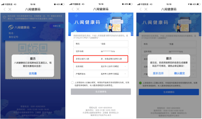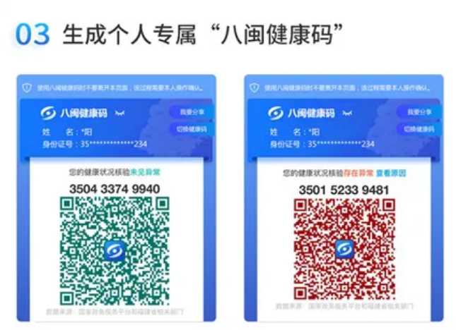 A先申領出發(fā)地的健康碼,再申請“八閩健康碼”。健康碼生成時間以實際各個省份數(shù)據(jù)上傳全國一體化政務服務平臺時間為準。