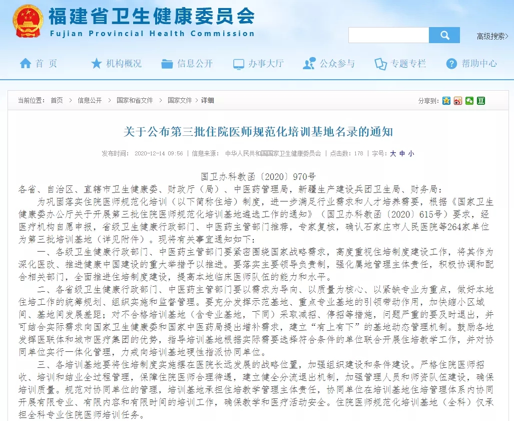 近日,根據(jù)國(guó)家衛(wèi)生健康委員會(huì)辦公廳、財(cái)政部辦公廳、國(guó)家中醫(yī)藥管理局辦公室聯(lián)合發(fā)布的《關(guān)于公布第三批住院醫(yī)師規(guī)范化培訓(xùn)基地名錄的通知》(國(guó)衛(wèi)辦科教函[2020]970號(hào))文件,確認(rèn)廈門(mén)大學(xué)附屬?gòu)B門(mén)眼科中心成為第三批國(guó)家級(jí)住院醫(yī)師規(guī)范化培訓(xùn)基地。