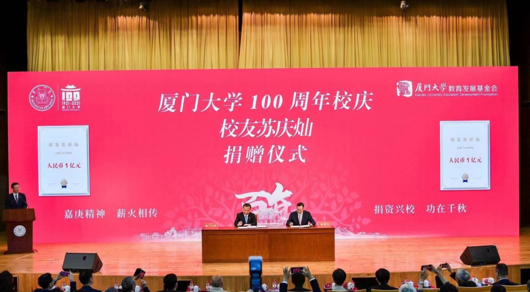 眼科醫(yī)院集團蘇慶燦董事長向廈門大學(xué)捐贈1億元。