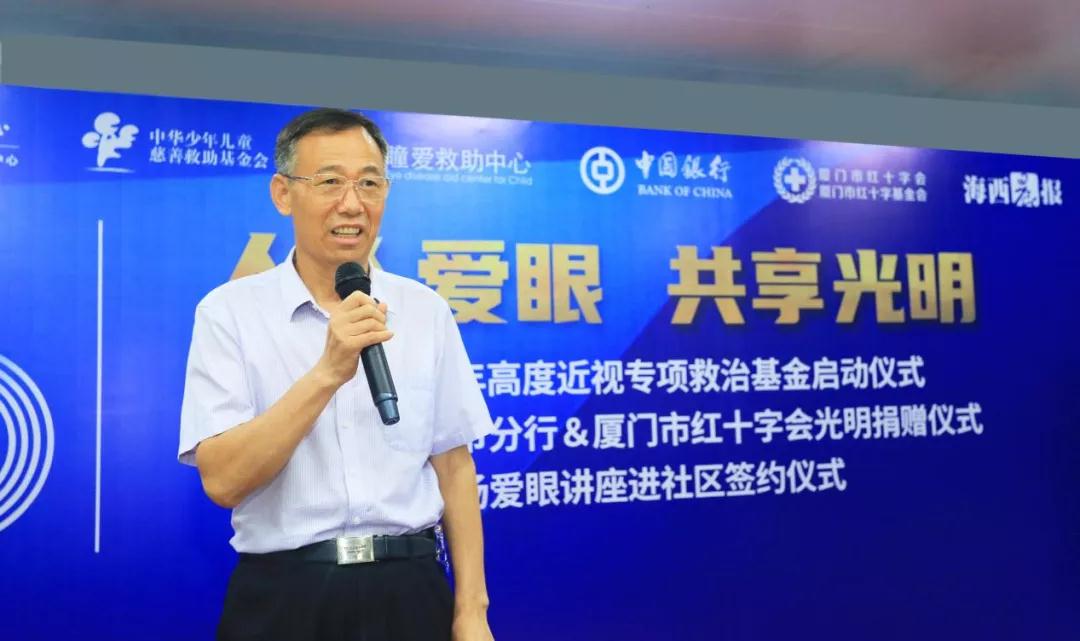 廈門(mén)市衛(wèi)生健康委員會(huì)、廈門(mén)市紅十字會(huì)、廈門(mén)市關(guān)心下一代工作委員會(huì)等部門(mén)領(lǐng)導(dǎo),原衛(wèi)生部近視眼實(shí)驗(yàn)室主任褚仁遠(yuǎn)教授,以及廈門(mén)眼科中心總院長(zhǎng)黎曉新教授,華廈