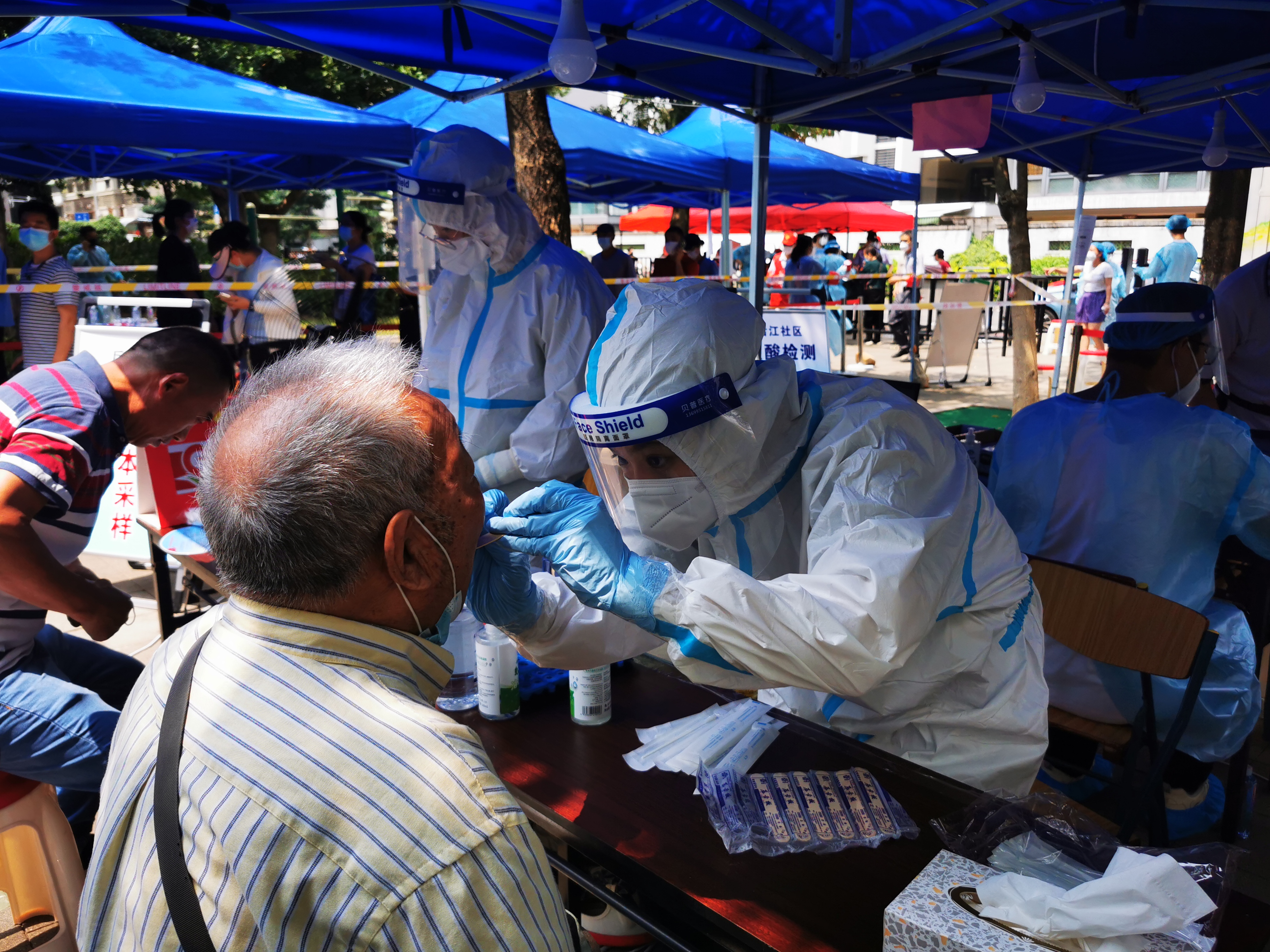 9月14日、15日,廈門眼科中心組織醫(yī)護(hù)人員,分批前往廈門何厝社區(qū)、萬壽陽臺山、祥濱公園、梅園公園等地點進(jìn)行核酸采樣。
