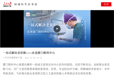 人民日?qǐng)?bào)走進(jìn)廈門眼科中心,專題報(bào)道老花眼診療,張廣斌院長(zhǎng)受邀做專題采訪。海西晨報(bào)、海峽導(dǎo)報(bào)、東南早報(bào)、健康時(shí)報(bào)、今日頭條、百度健康、騰訊視頻、愛(ài)奇藝、新浪微博等十余個(gè)平臺(tái)聯(lián)袂報(bào)道!