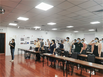 會議末,廈門眼科中心黨支部書記潘美華院長帶領全體黨員重溫入黨誓詞。