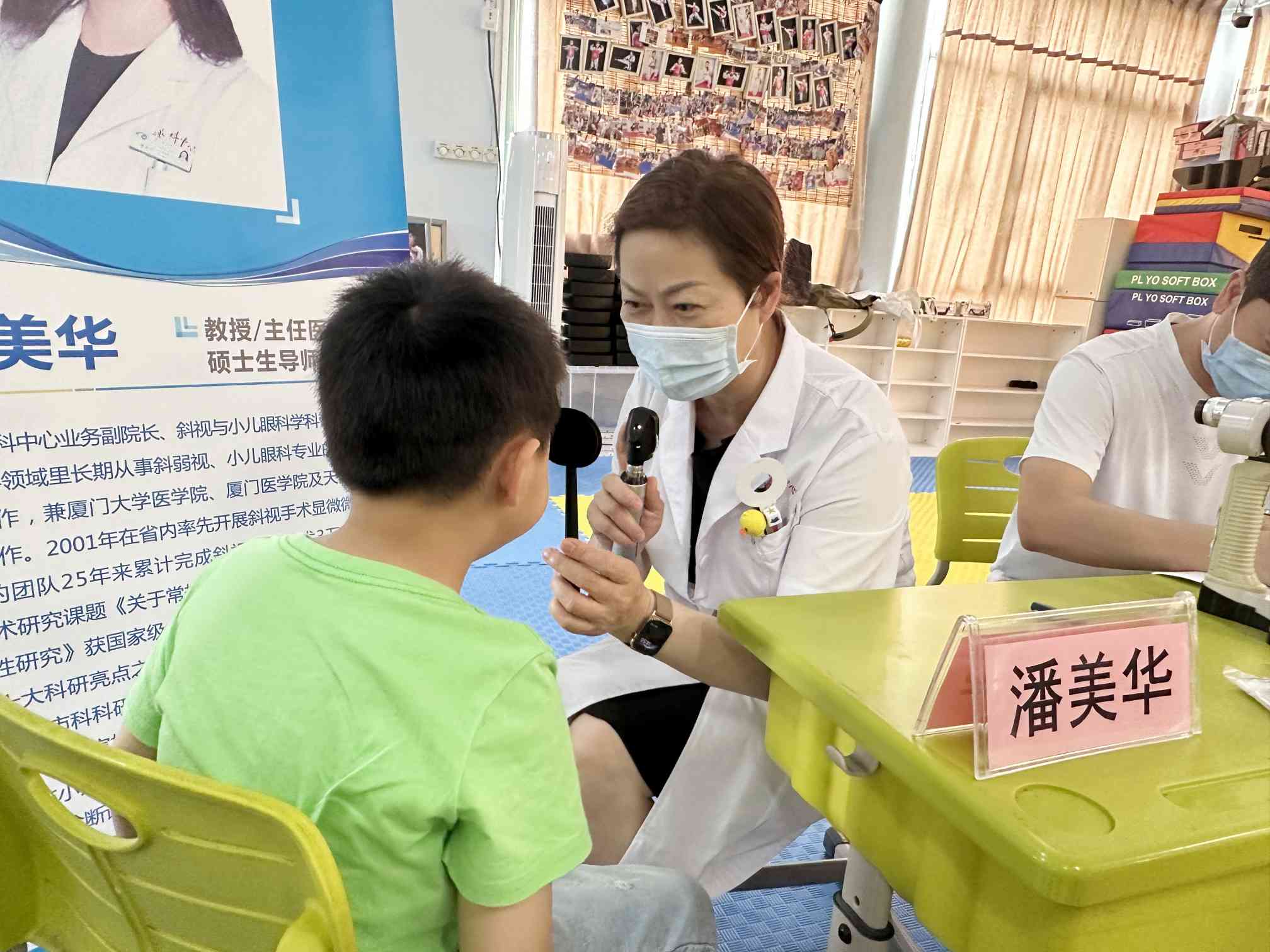 近日,為守護特需兒童的光明未來,在廈門市「愛心廈門」建設(shè)工作領(lǐng)導(dǎo)小組辦公室及海滄區(qū)殘疾人聯(lián)合會的指導(dǎo)下,廈門眼科中心「看見幸?!寡劢】倒骓椖恐驹刚叻?wù)隊在業(yè)務(wù)副院長、斜視與小兒眼病中心學(xué)科帶頭人潘美華教授的帶領(lǐng)下,來到了海滄區(qū)小海星特殊兒童服務(wù)中心,為特需兒童們開展了一場特殊的眼健康公益篩查診療活動。