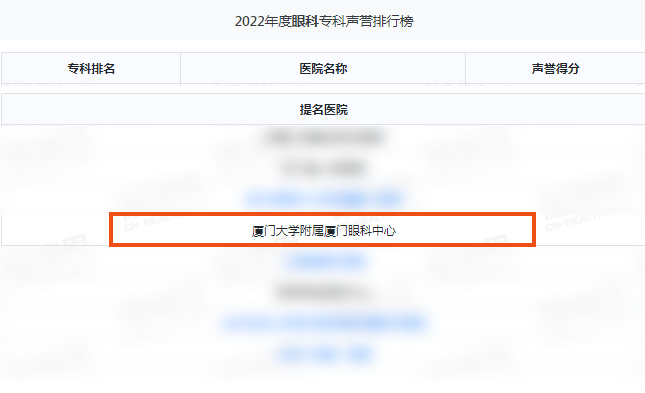 11月25日,由國(guó)內(nèi)著名同行專家擔(dān)任評(píng)審的復(fù)旦版《2022年度中國(guó)醫(yī)院綜合排行榜》和復(fù)旦版《2022年度中國(guó)醫(yī)院??坡曌u(yù)排行榜》在上海市發(fā)布。廈門眼科中心榮獲2022年度眼科??坡曌u(yù)排行榜提名,是全福建省唯一上榜的??漆t(yī)院,且已經(jīng)是廈門眼科中心連續(xù)第五年上榜!