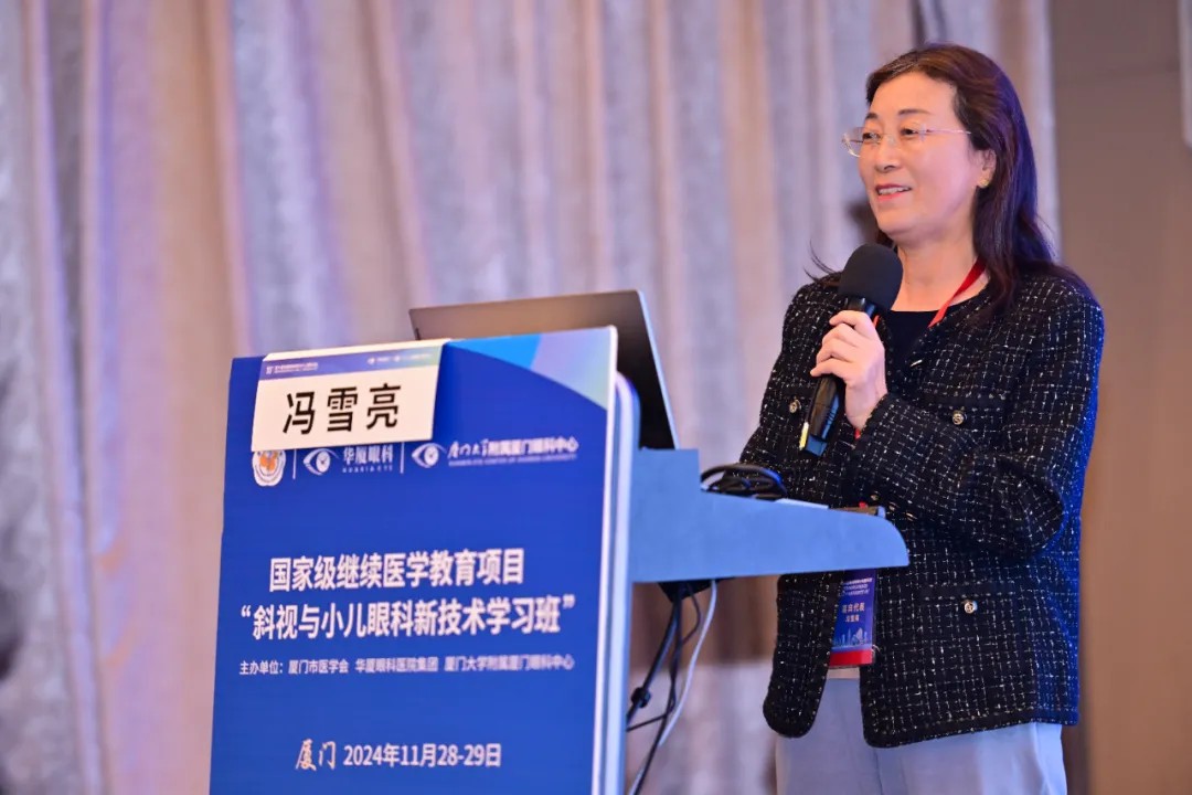隨后,福建省醫(yī)學(xué)會眼科學(xué)分會主任委員朱益華教授,中華醫(yī)學(xué)會眼科學(xué)分會斜視與小兒眼科學(xué)組副組長王利華教授,中山大學(xué)中山眼科中心顏建華教授,山西省眼科醫(yī)院馮雪亮教授,華廈眼科醫(yī)院集團(tuán)視光學(xué)科總監(jiān)、深圳華廈眼科醫(yī)院劉春民教授,廈門眼科中心業(yè)務(wù)副院長、斜視與小兒眼科學(xué)科帶頭人潘美華教授,合肥名人眼科醫(yī)院陳林義教授,武漢華廈眼科醫(yī)院戴鴻斌教授,成都愛迪眼科醫(yī)院廖俊教授,大連華廈眼科醫(yī)院盧燕教授等專家分別圍繞疑難復(fù)雜斜視、弱視、近視防控、高度近視及青光眼等議題進(jìn)行了學(xué)術(shù)分享,介紹了相關(guān)兒童眼病臨床診療的新發(fā)現(xiàn)、新進(jìn)展及新技術(shù)。