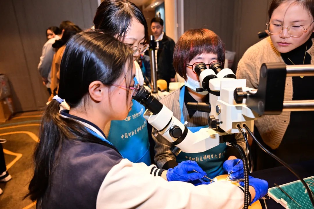 除學(xué)術(shù)環(huán)節(jié)外,本次論壇特別開設(shè)了斜視手術(shù)Wetlab實(shí)操培訓(xùn)專場及手術(shù)錄像展播。廈門眼科中心斜視與小兒眼科的主任醫(yī)師謝仁藝,副主任醫(yī)師楊梅、何歡、王海燕為學(xué)員們一對一講解了斜視手術(shù)的操作要點(diǎn)、技巧,手把手指導(dǎo)學(xué)員在動物眼上實(shí)操,大大提升了學(xué)員們的斜視手術(shù)技能。