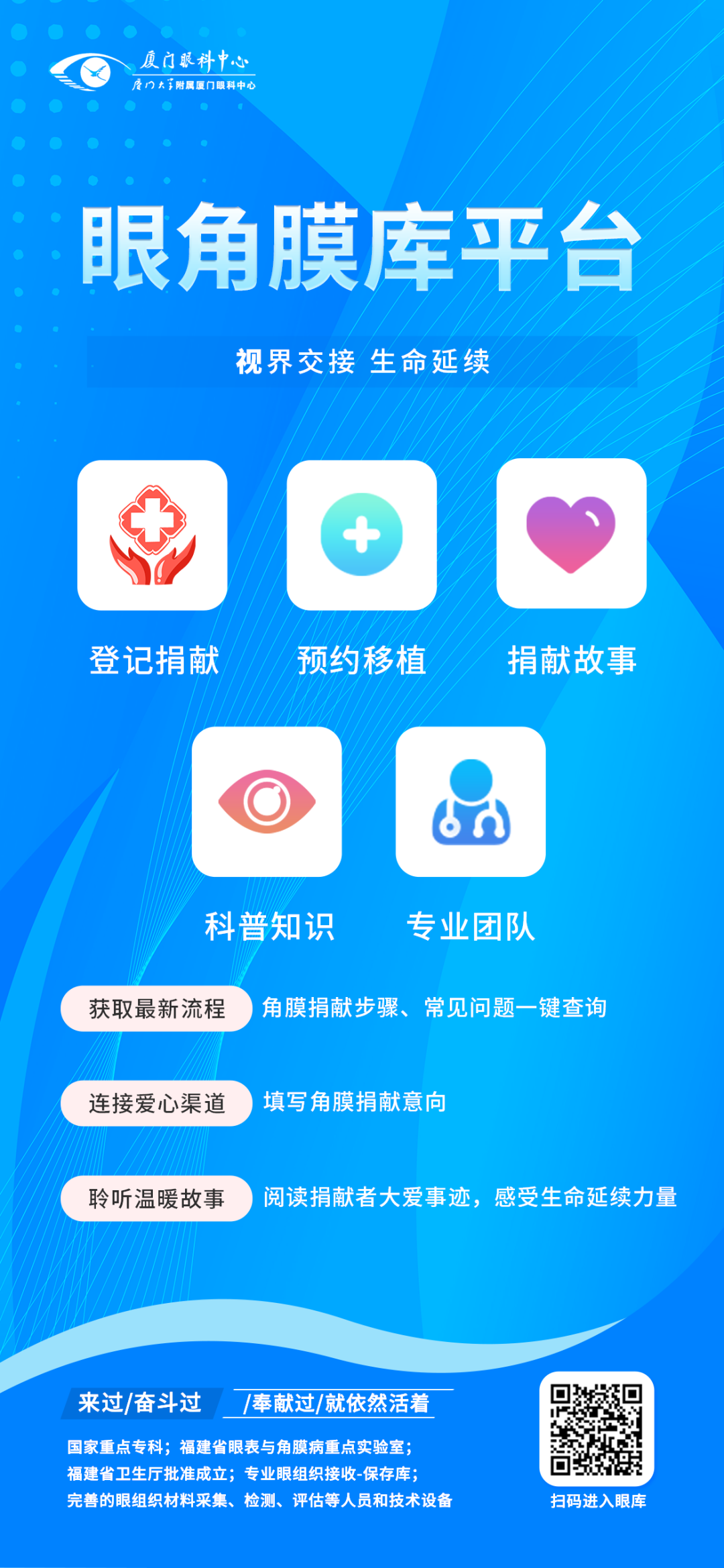 廈門眼科中心眼庫(kù)平臺(tái),能快速獲取角膜移植與角膜捐獻(xiàn)相關(guān)內(nèi)容。在這里,您可以: