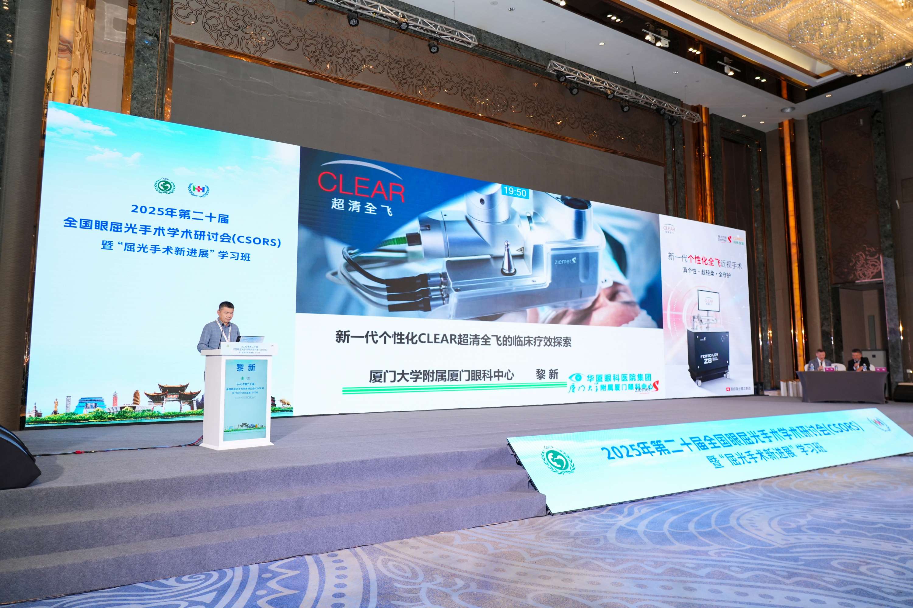 在備受矚目的“新一代屈光解決方案”專題環(huán)節(jié),我院屈光??评栊轮魅巫鳛楹诵闹v者,向與會(huì)同仁系統(tǒng)介紹了新一代CLEAR超清全飛技術(shù)。該技術(shù)作為全球第二種角膜基質(zhì)透鏡取出手術(shù)(KLex)解決方案,自問世以來便備受關(guān)注,并于2025年4月正式獲得中國NMPA批準(zhǔn),為國內(nèi)屈光不正患者帶來了新的希望。