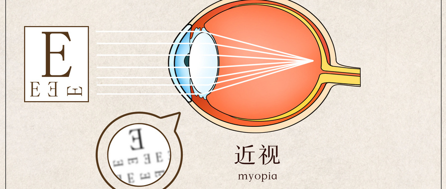 眼軸變長(zhǎng),當(dāng)平行光線進(jìn)入眼球時(shí),遠(yuǎn)處的物體成像在視網(wǎng)膜前,在視網(wǎng)膜上就是模糊的像,導(dǎo)致我們看遠(yuǎn)處的東西不清楚,這就是我們常說的近視(軸性近視)。