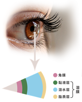 我們湊近看眼睛時(shí),能看到眼睛表面有一層水液,像一張薄膜一樣,這就是淚膜。