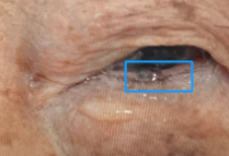 檢查時(shí)高麗花主治醫(yī)師發(fā)現(xiàn),這個(gè)不到一厘米大小的黑點(diǎn)長(zhǎng)在陳阿婆左眼的眼瞼下面,黑色的邊緣不清晰,肉眼已經(jīng)看得見表面有些破皮。根據(jù)多年的臨床經(jīng)驗(yàn)來診斷,初診判定為基底細(xì)胞癌。
