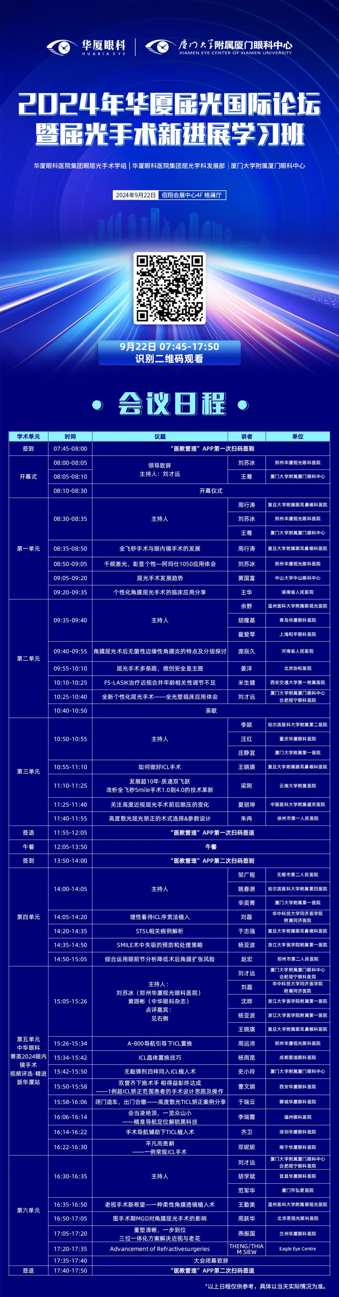 議程揭曉|2024年華廈屈光國(guó)際論壇暨國(guó)家級(jí)繼續(xù)教育項(xiàng)目“屈光手術(shù)新進(jìn)展學(xué)習(xí)班”