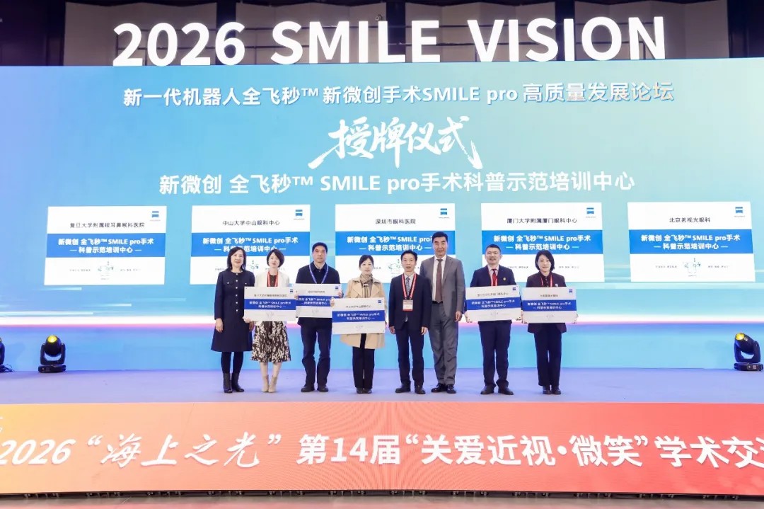 本次大會重點聚焦“新一代機器人全飛秒SMILE pro”領域,廈門眼科中心憑借精湛的技術與豐富的案例積累,獲頒“全飛秒SMILE pro高質量發(fā)展貢獻獎””及“新微創(chuàng)全飛秒SMILE pro手術科普示范培訓中心”。
