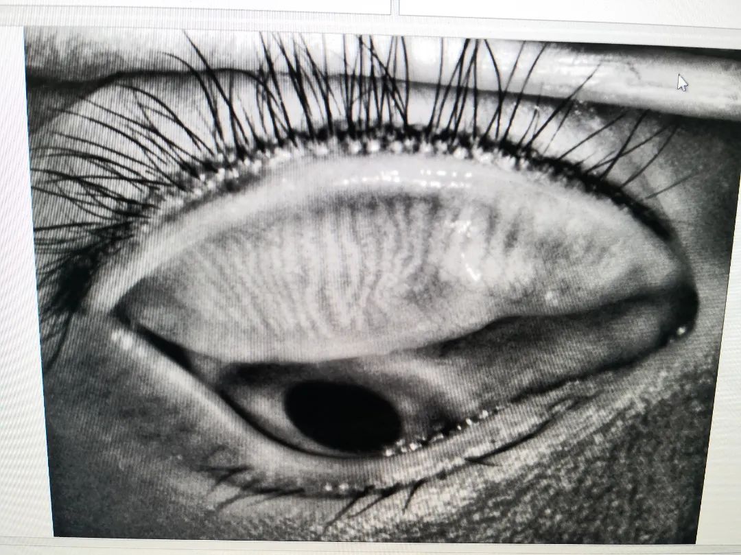 瞼板腺就是位于上下眼皮里的腺管,它是分泌油脂的地方,腺管萎縮或天生無腺管都存在瞼板腺功能異常,導致油脂不能正常分泌。淚膜中缺少脂質(zhì)層,淚液蒸發(fā)速度會加快,從而導致干眼。